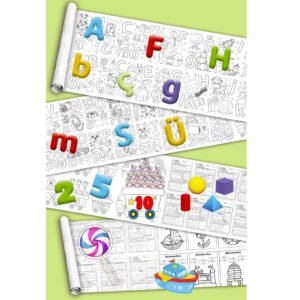 Alfabe, Harfler, Sayılar, Şekiller Dev Boyama Kağıdı Boyama Rulosu Büyük Boy 5 Metre