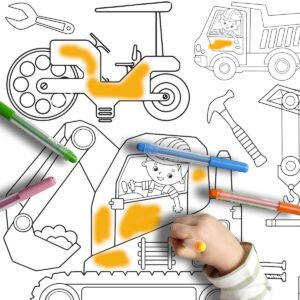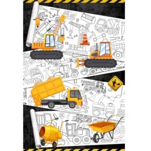 İnşaat Araçları Seti Tır Vinç Kepçe Dev Boyama Kağıdı Boyama Rulosu Büyük Boy 5 Metre