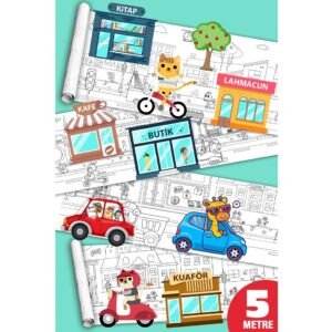 City Life Şehir Hayatı Temalı Dev Boyama Kağıdı Boyama Rulosu Büyük Boy 5 Metre