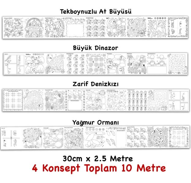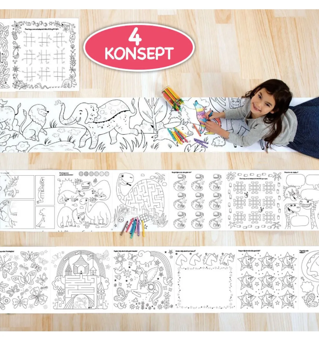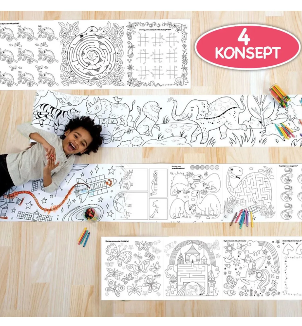 Çocukların hayal güçlerini serbest bırakmaları ve eğlenceli bir sanat deneyimi yaşamaları için özel olarak tasarlanan Çiz Çöz Boya boyama kağıdı rulosu ile tanışın! 10 metrelik genişliği ve 30 cm’lik eniyle, çocuklar sonsuz yaratıcılık alanına adım atıyor.