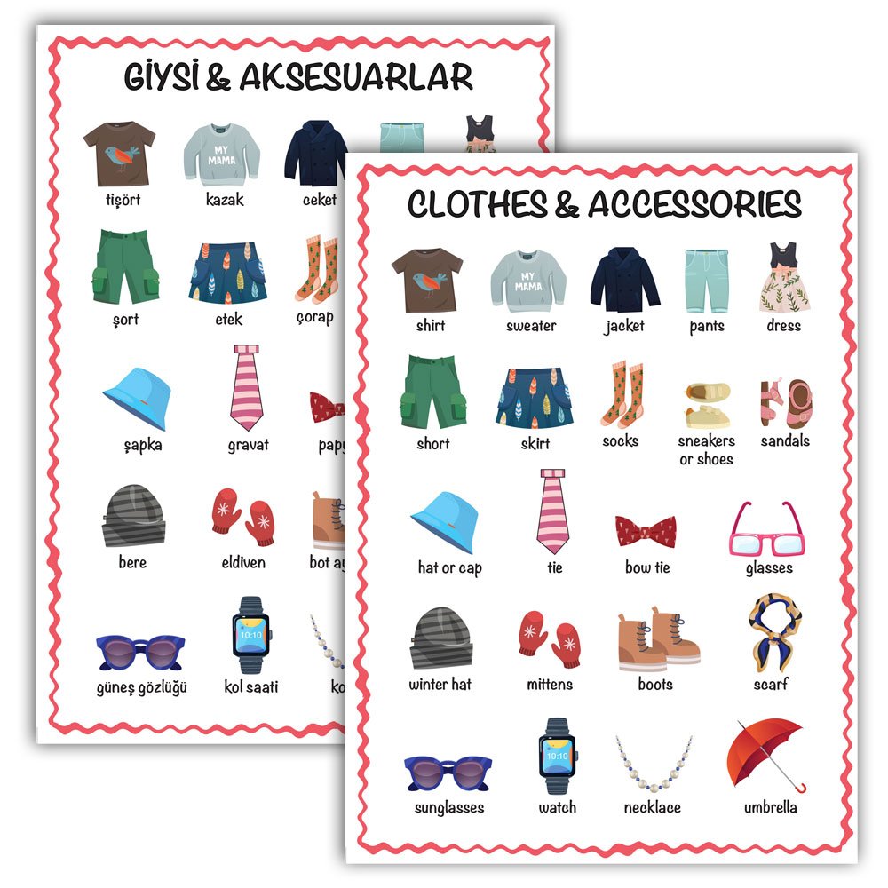 İngilizce & Türkçe setimiz çocukların kelimeleri hızlı bir şekilde ezberlemelerine, kelimeler hakkında daha fazla bilgi edinmelerine ve İngilizce becerilerini geliştirmelerine büyük katkı sağlamaktadır. Yeni bir dil öğrenmede en etkili şey olan kelime ezberlemeyi bu setteki görsel çizimlerle çocuklarınız çabucak kavrayacak ve ezberleyecek.