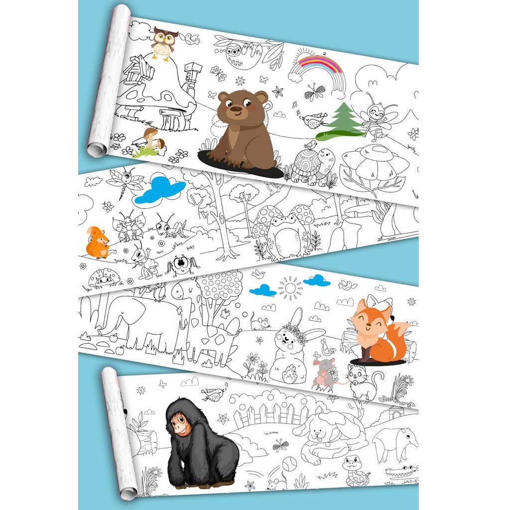 Sevimli Dostlar – Hayvanlar Alemi Boyama Kağıdı Rulosu ile çocuğunuz, hayvan sevgisiyle dolu bir dünyayı renklendirmenin keyfini çıkaracak! 🐼🦋