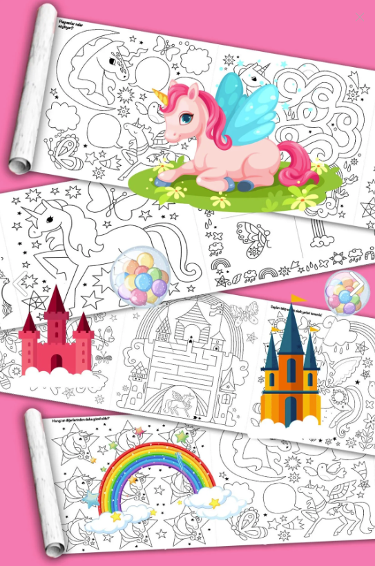 Unicorn Magic Boyama Kağıdı Rulosu ile çocuğunuz, kendi büyülü dünyasını yaratmanın keyfini doyasıya yaşayacak! 🦄🌈